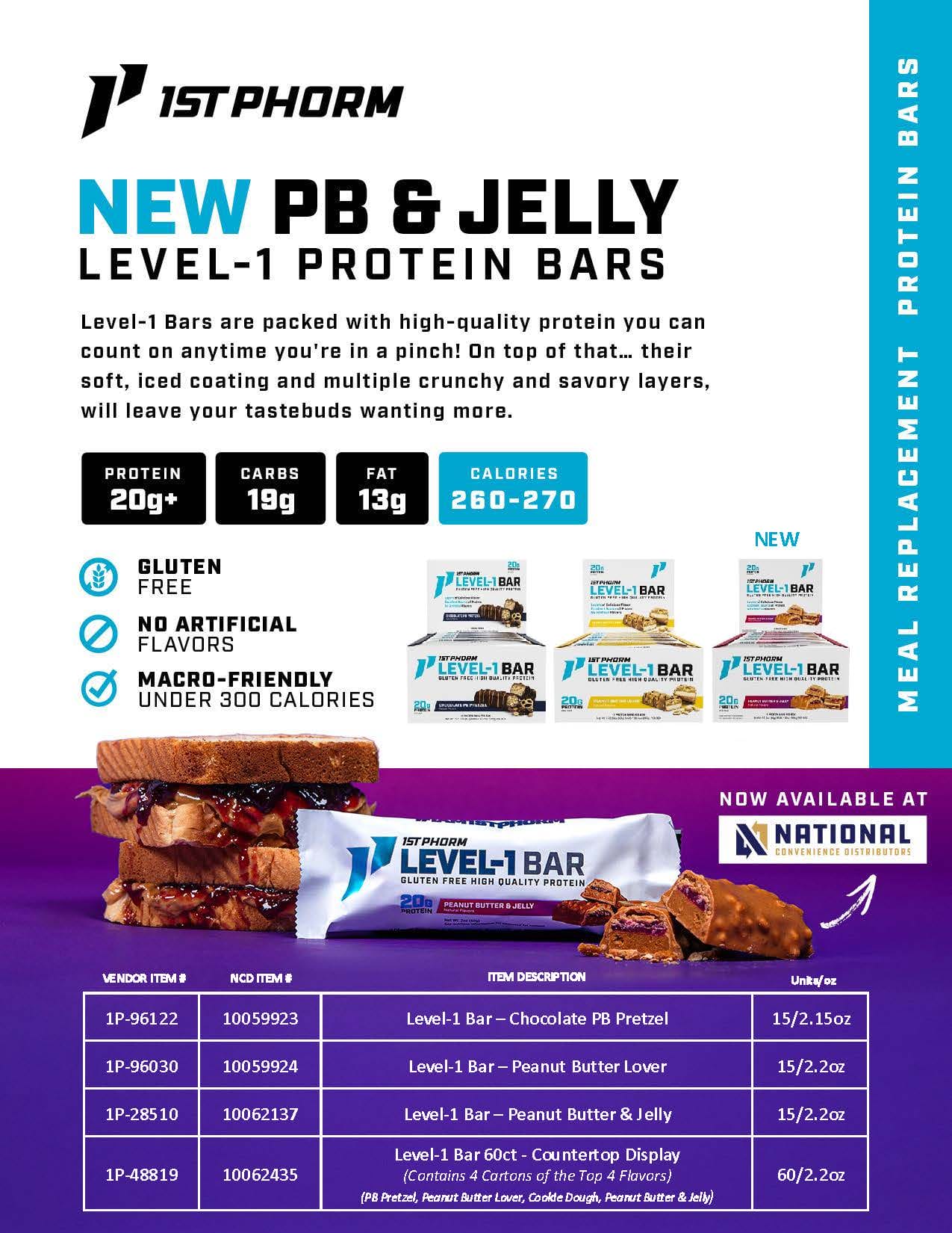 The Level-1 Bar lineup is built around flavors consumers already love. Options like Chocolate Peanut Butter Pretzel, Peanut Butter Lover, Peanut Butter & Jelly, and Cookie Dough offer recognizable taste profiles with premium execution, helping remove hesitation at the point of purchase. These approachable flavors appeal to a broad customer base — from dedicated fitness enthusiasts to everyday snackers — and help turn first-time buyers into repeat customers.